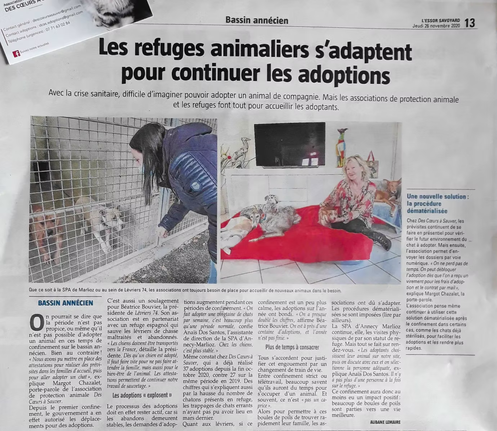 Des Cœurs à Sauver a donné une interview à L’Essor Savoyard.